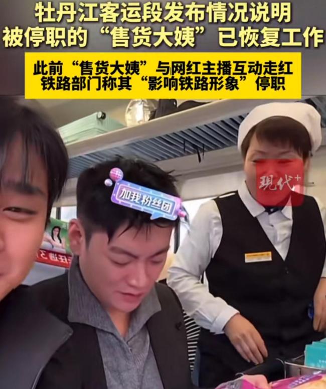 11月26日,黑龙江佳木斯一位列车售货员发视频称,她在列车上售卖商品时遇到了一位正在直播的网红博主。在她的热情推销中,网红博主和她多次互动。事后领导让她通知博主删除相关视频,第二天她被告知已被辞退,原因是“影响铁路形象”