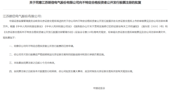 一只手掌大小的电子风扇,悄然运转在比亚迪、奇瑞等爆款车型的引擎舱深处,很少有人注意到它——但在长期资金市场聚光灯下,这个“幕后功臣”终于浮出水面。4月10日,江苏朗信电气股份有限公司(以下简称朗信电气)收到证监会出具的注册批文(证监许可〔2026〕710号),同意其向不特定合格投资者公开发行股票并在北交所上市。
